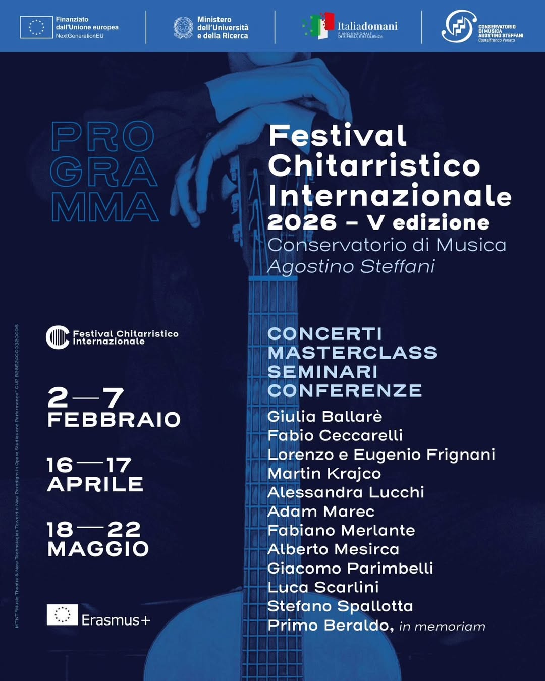 Il giorno 3 febbraio 2026 ospite delle classi di chitarra del Conservatorio "A. Steffani" di Castelfranco Veneto, TheGuitarclass è stata oggetto di una bella ed intensa presentazione alla presenza dei numerosi studenti del Conservatorio. La presentazione è stata inserita nel Festival internazionale di chitarra organizzato dai MM.i Fabiano...